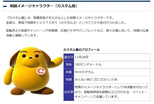 税関の「カスタム君」をご存じだろうか。