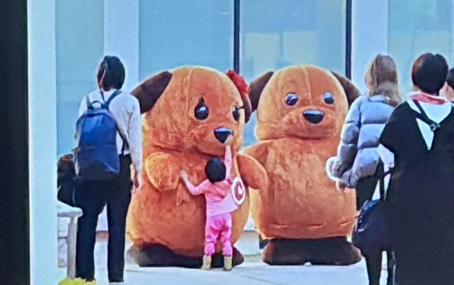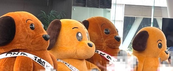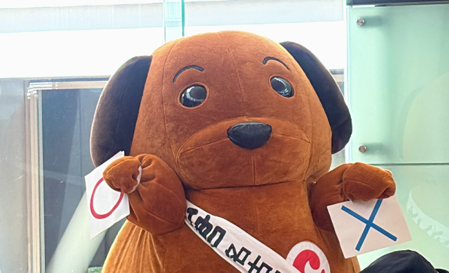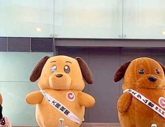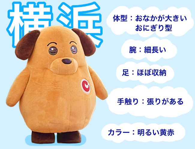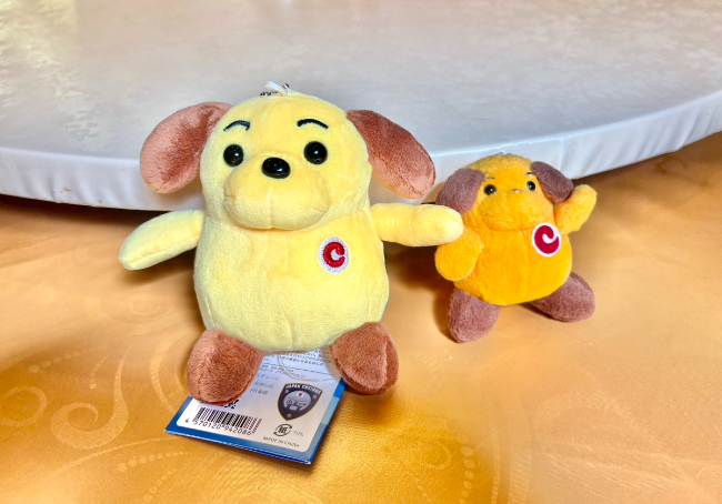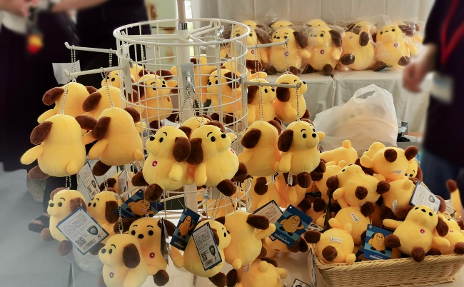 麻薬探知犬がモデルの、丸っこくて黄色いかわいらしいワンちゃんだ。
