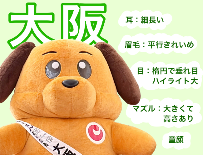 大阪のカスタム君は、目とマズル(鼻)が大きい。童顔でキャラクターっぽい。誰もが親しみやすい顔つきと言えるだろう。