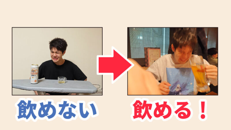 ④先輩とかと飲む時は最初の一杯はビールって自分の中で制約を決めて、続けてたら飲めるようになってた