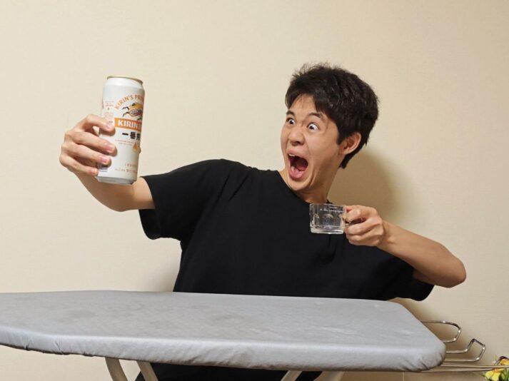 と言いたいところなのですが、帰りに黒ラベルを買い忘れてしまったので今日は一番搾りで勘弁してください!!