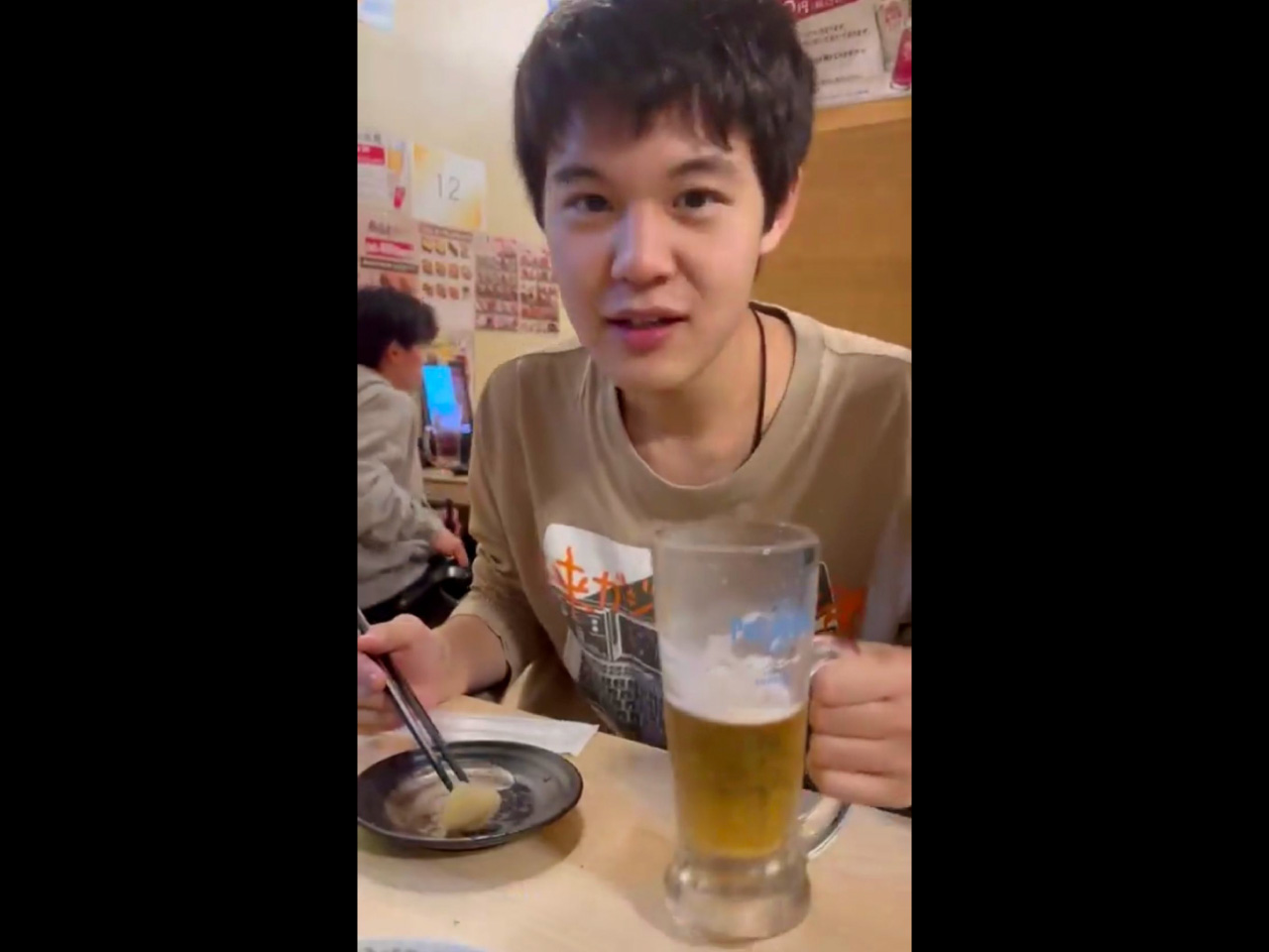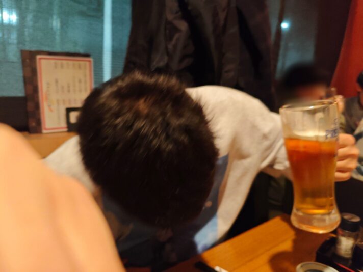今日は飲み屋で友人のビールを1/3飲ませてもらうことに。