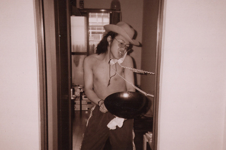 2つの電話に出ながら中華鍋を振るテンガロンハットを被った半裸の長島
