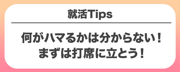 ほんと、採用ってどこで何がハマるか分からないからね。だからこそ、運を掴むために多く打席に立つのが大事!