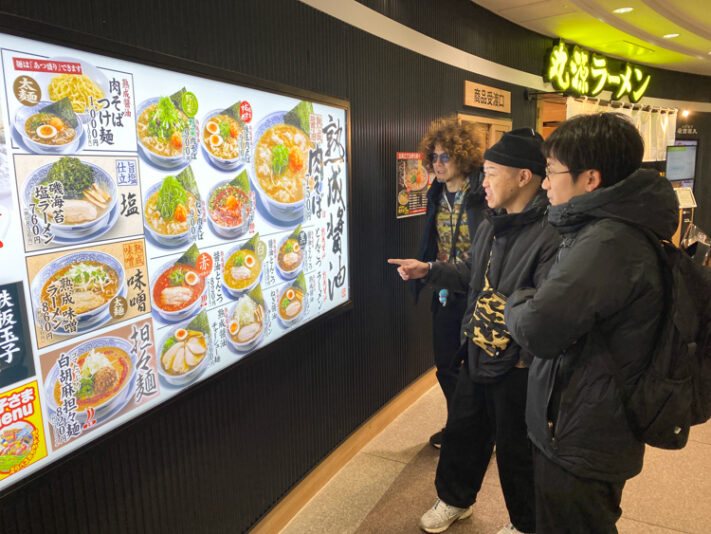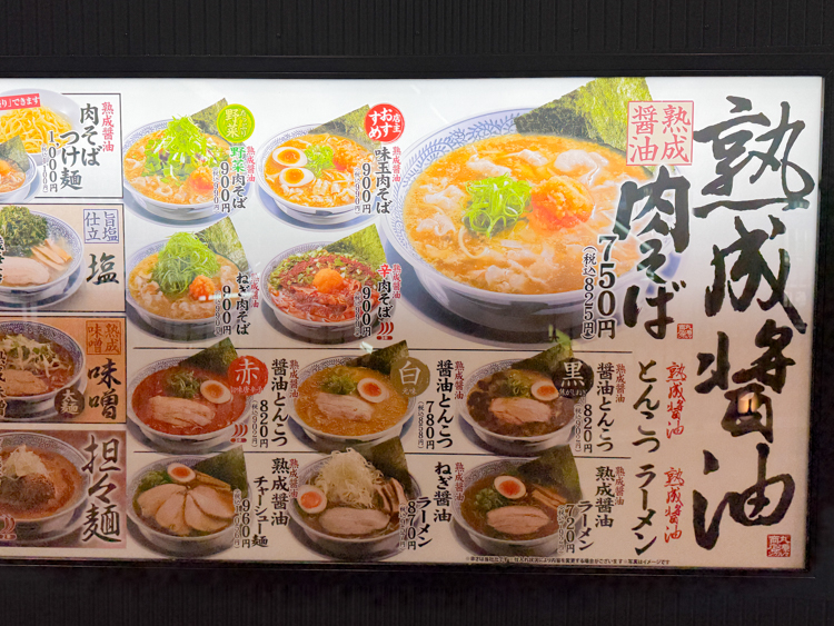 あー、でも肉そばじゃない醤油もあるし、とんこつも三種類…で、味噌もあります…と