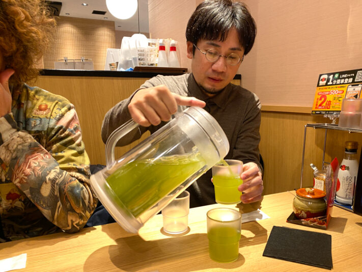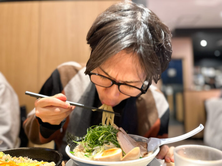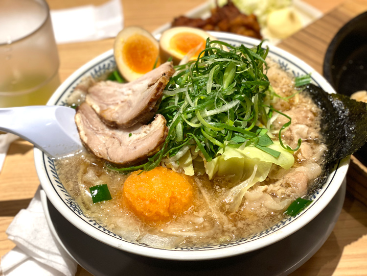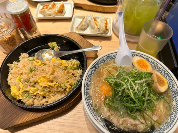 丸源は水じゃなくて冷たい緑茶なのも嬉しいんですよね。あとは席の間隔が広かったり、糖質50%OFF麺に変更できたり(+税込み165円)、そういう細かな嬉しいポイントがたくさん体験できるのも丸源ラーメンのいいところなんです
