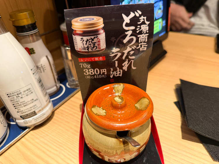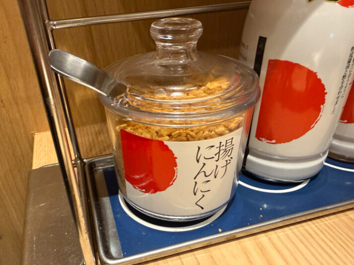 「どろだれラー油」。名前が美味しそう。どろ。という名前が食欲をそそるって最初に気づいた人すごい。この「どろだれラー油」と「揚げにんにく」をいれるとラーメンに勢いのような物がついて、これがかなり好きでした。おれだけのおっさんの口になっている。そう思いました。揚げにんにくがスープに浸かって柔らかくなって美味っ。