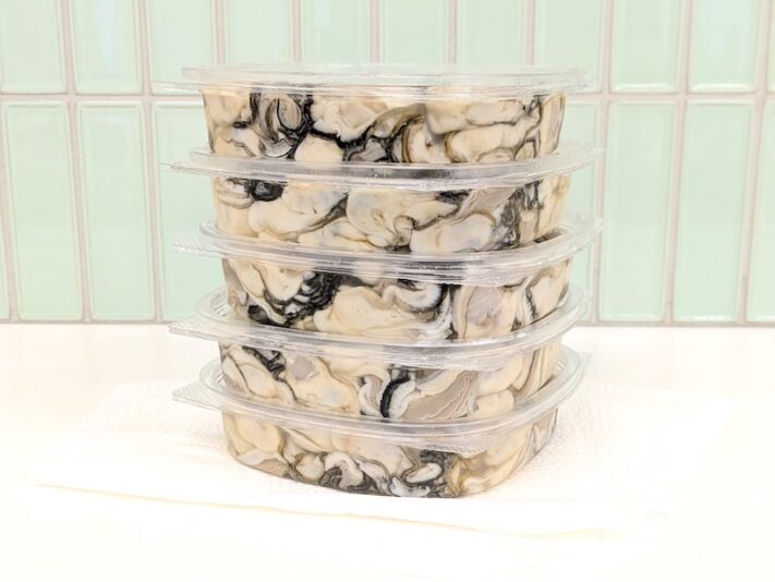 今回は5パック(計2.5kg)の生牡蠣をお取り寄せ。1パックに約500gの牡蠣がぎっしり詰まっていて、開封するときは毎回ビビります。
