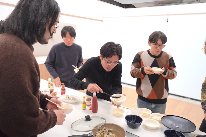 牡蠣鍋とアヒージョが旨いという噂がキッチンスタジオ内に広まると、情報量が多い「うまっ!」の写真を撮ることができました。