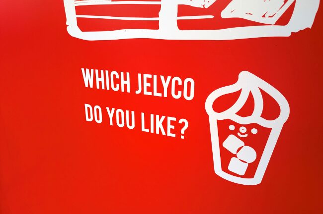 それぞれの飲み物に対応した味のジェリーがどれも美味しそう。ま、迷うよ。