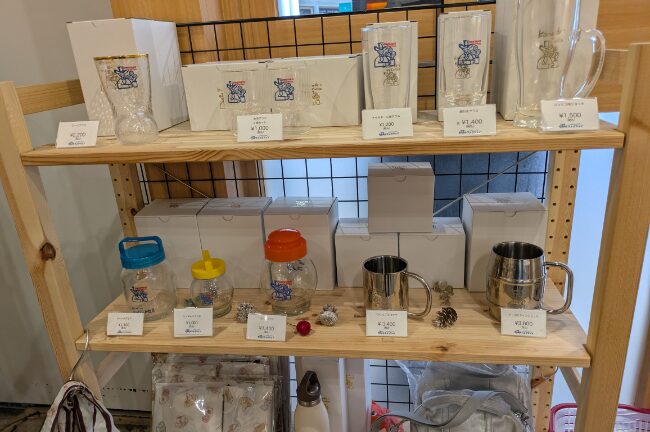 ちなみに店内はコメダのグッズショップも併設されていて、お冷のグラスや、ブーツグラスも買えちゃう。我が家のコップは、これです。