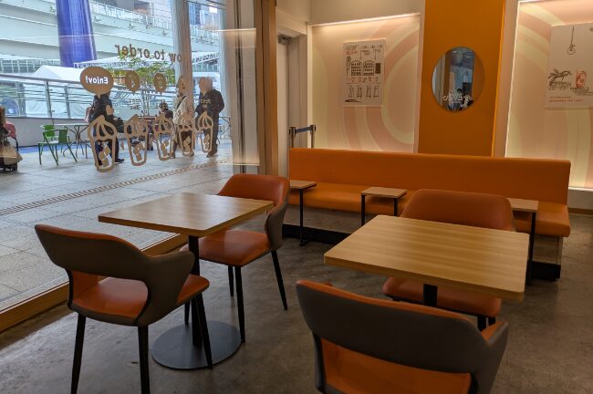 テイクアウトもイートインも両方可能。過ごしやすいゆったり空間とお見受けいたしました。