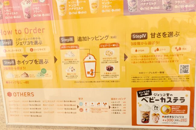 自分は未だにスタバのカスタムが怖い(種類がありすぎるから)のでモバイルオーダーでしか頼めませんが、ジェリコ堂は注文時に店員さんがトッピング有無などを順番通りに聞いてくれるのでまったく困らずにカスタムが可能です。アリガテ…