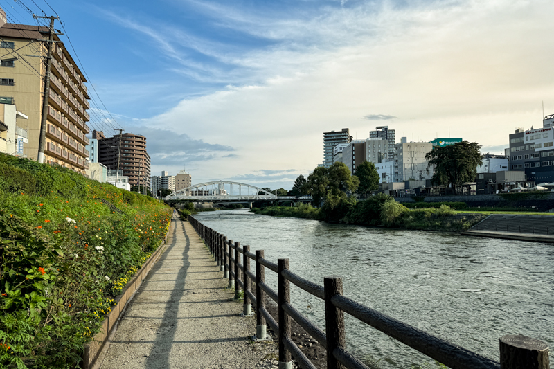 歩いて楽しい盛岡というだけあって、徒歩で回れる範囲に名所があったり北上川の周りでゆっくり出来たりいい街です。