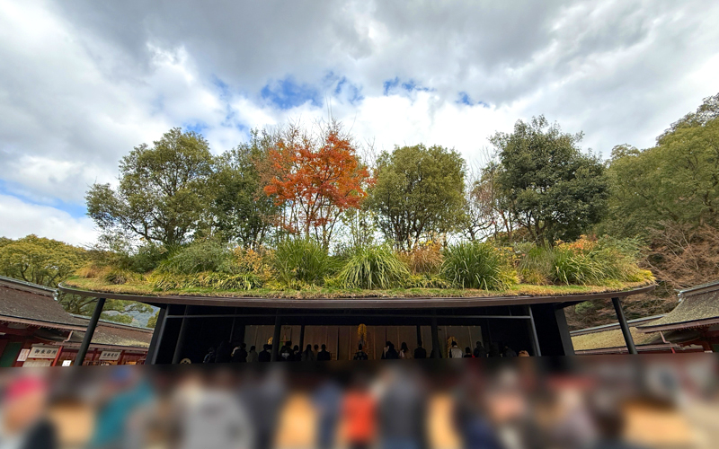 太宰府天満宮の仮殿は屋根の上に植物が生えててすごい