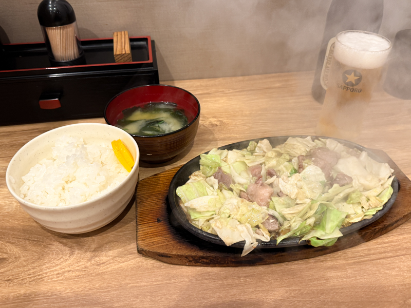 また鉄板かよと思うかもしれませんが、こちらは本当にガッツリ中のガッツリ。ニンニクがバチクソに効いた味付けで炒められたキャベツと肉がこれでもというくらい乗ってきます。それに特製の辛味噌を絡めて食べれば、記憶がぶっ飛ぶくらいに美味しいです。美味すぎて旅行中、2食連続で食べたこともあります。