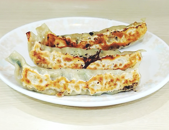 ジャンボ餃子。知ってる餃子の倍の長さ。もしかしたらあずきの入ったサヤをモチーフにしているかもしれないし、全く関係ないかもしれない。
