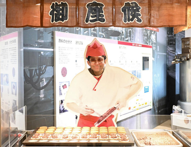 昭和25年(1950年)に「御座候」の販売開始。その名の由来は「お買い上げいただきありがたく御座候」の気持ちが込められているという。なんて殊勝な心構え。我々も「記事を読んでいただきありがたく御座候」の気持ちを込めて「御座候」に改名したいと思う。2人とも