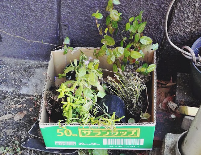 極限まで手間を省いた寄せ植え