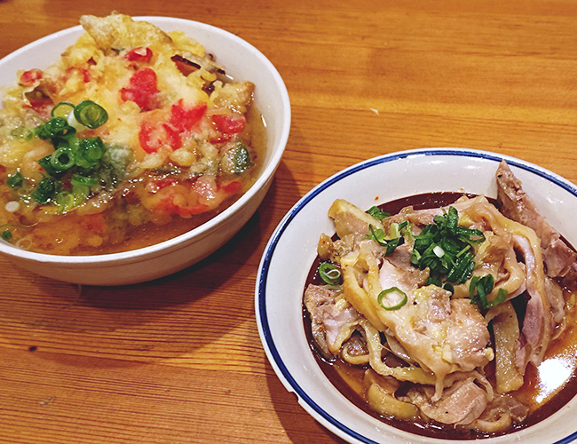 かき揚げ天つゆ(左)ひねポン(右)。
