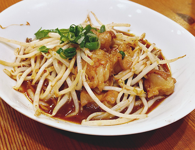 もやしとホルモン炒め。こういうのが一番助かる。