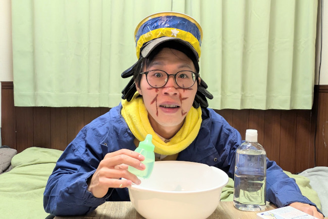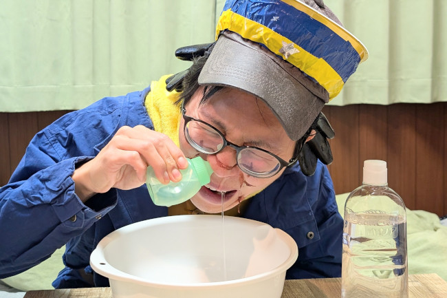 今回は撮影のために洗面器の上でやってみますが、初心者は、洗面台や風呂場でるのが安全だとは思います。