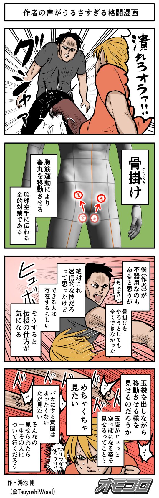 【4コマ漫画】作者の声がうるさすぎる格闘漫画