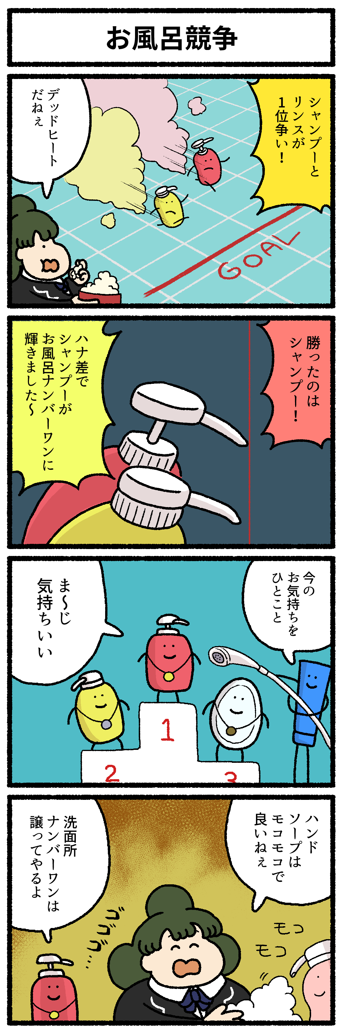 【4コマ漫画】お風呂競争