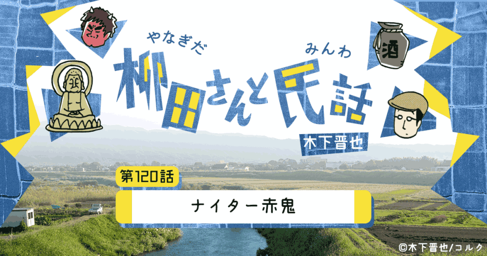 【8コマ漫画】木下晋也 『柳田さんと民話』 –「ナイター赤鬼」