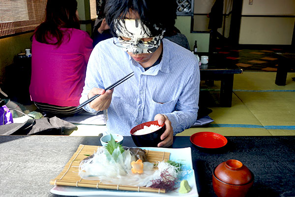 「えへへ、サガケンのイカは透き通っていて歯ごたえ抜群。噛めば噛むほど甘みが滲んできて……イカ刺しにイカ天に……イカしゅうまいなんてのもヨカネェ……」