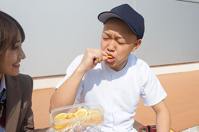 「長島くんが試合で頑張れるように、これ作ってきたんだ。レモンのはちみつ漬け」