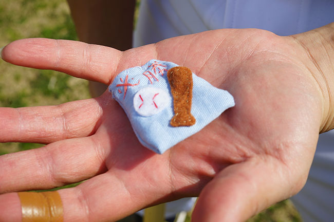 「お守りも手作りで作ったの。明日の試合、打てるといいね!」
