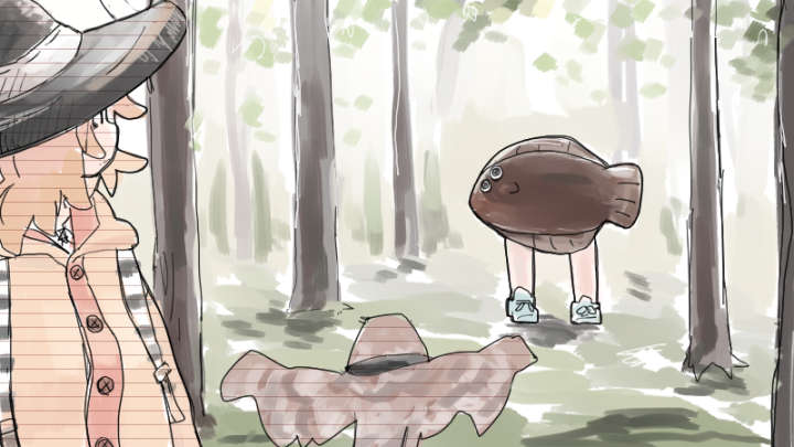 アイツの中ではヒラメ君ってのがいて、それが林にいること特にがおかしいことじゃなかったので助かった…のか…!