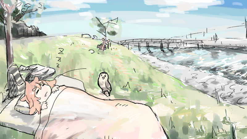 こんばんはーあなたも同じ河原で寝過ごしたんですか?奇遇ですね、私も寝過ごしました!