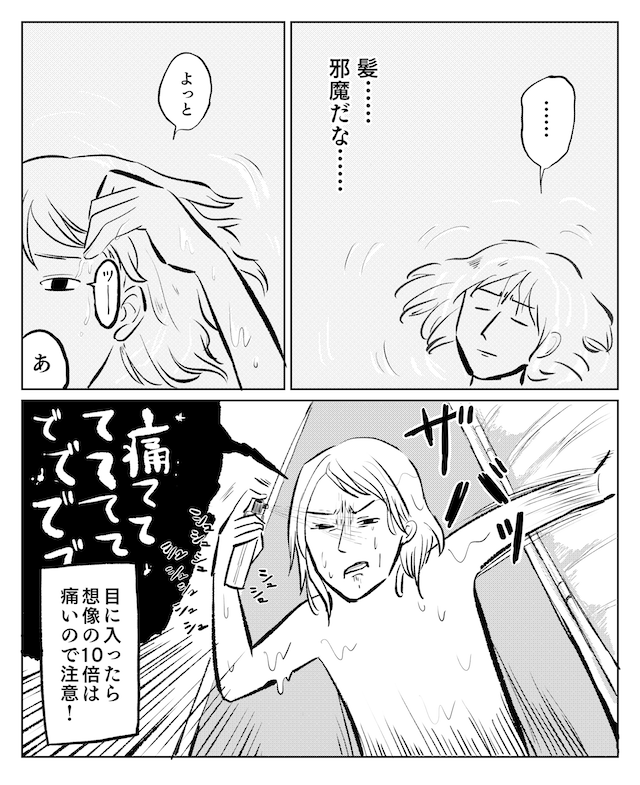 なので「そろそろ外の空気吸おうかな」と思い体を起こした瞬間に髪の毛から垂れた水が再び目に入って2度目の真水スプレータイムをした。全然学習しない。