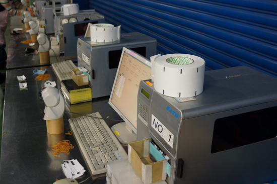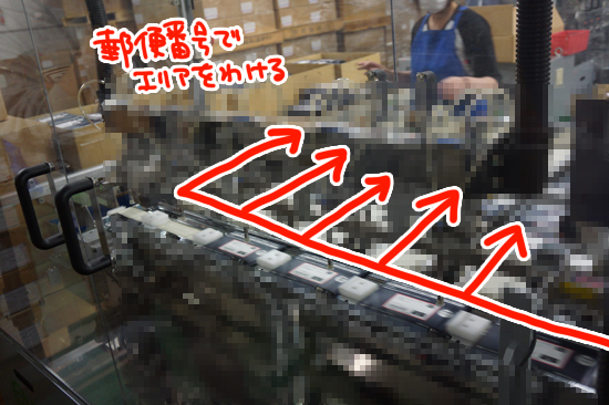 そして郵便番号で分けられた封筒が、ずいずいと機械から出てきます。