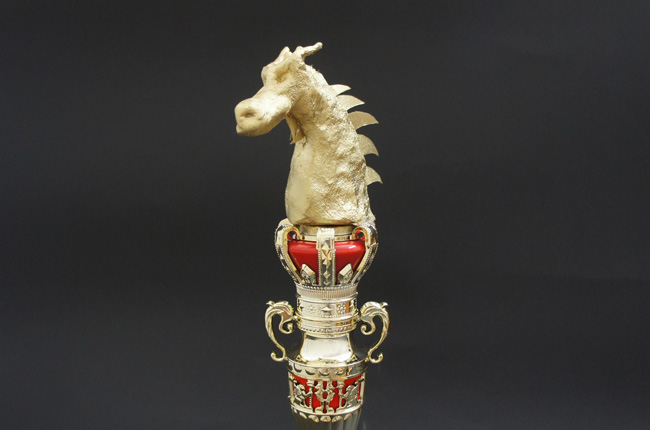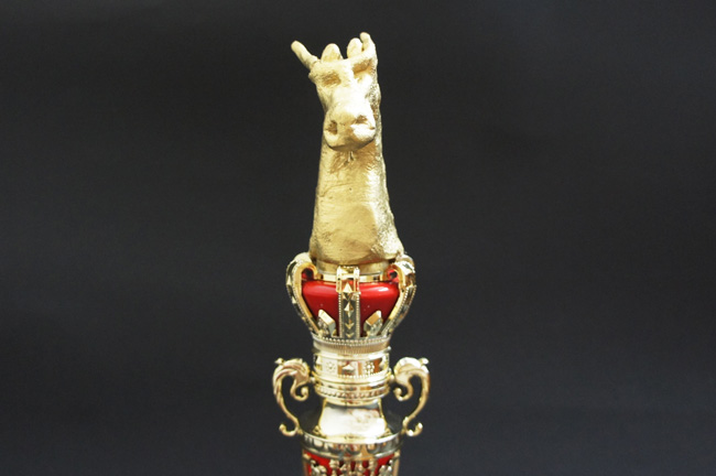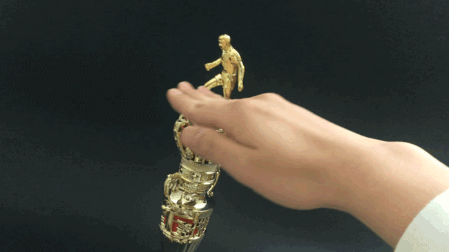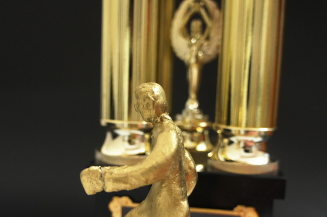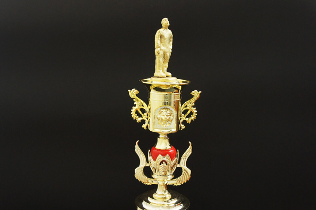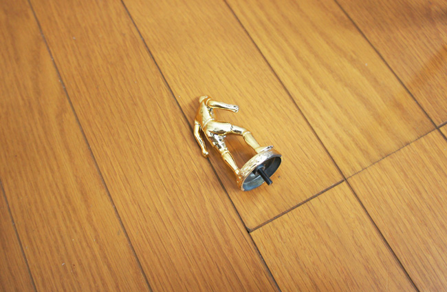 まず市販トロフィーの先っちょを、手刀でトンします。