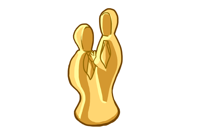 背を丸めてPCと向き合うネット民をトロフィーの頂上にあしらいました。