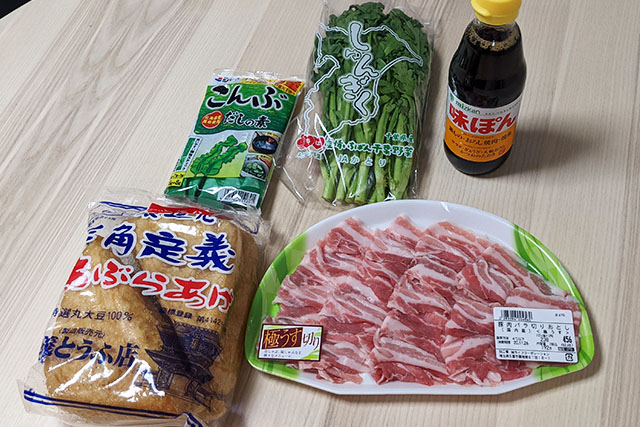 お揚げだけじゃなく、春菊と豚肉とポン酢のマリアージュが最高!こんぶだしも合いますねえ~。