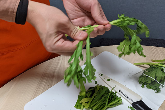簡単に葉っぱと茎が分離できるので、何かと楽です。