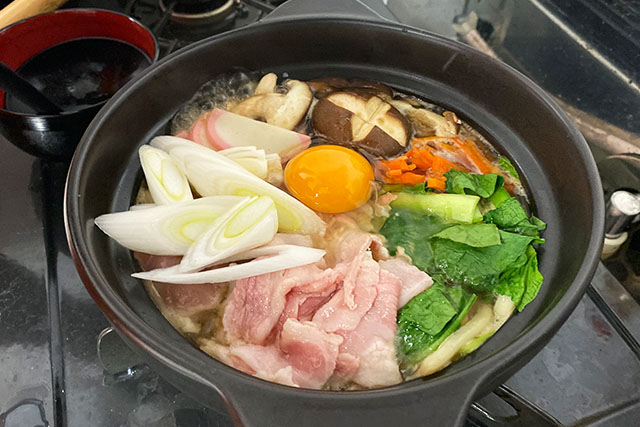 鍋焼きうどんって「できてる感」がすごくあるんですよね。冷蔵庫にあるものとか、おかずの残りをうどんに入れるだけで、いっぱしの料理を作れてる感じがあって。