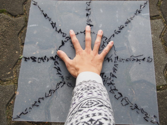 術を発動した時に床に出てくる、術式展開の模様も作っておきました。外が暑いのでうちわにもなって便利です。