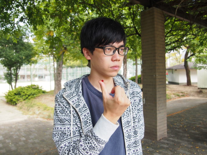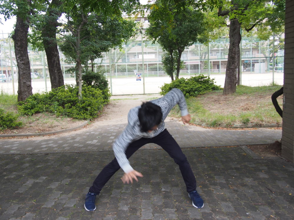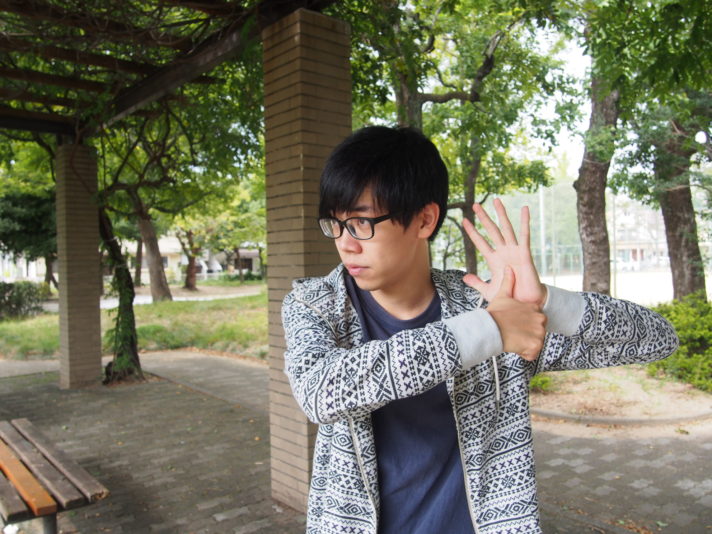 空間に手を突き出す