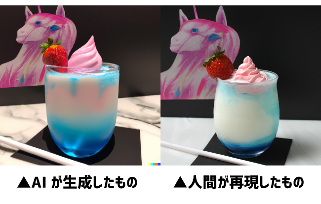 今回はAIに考えてもらったカクテルレシピを再現しましたが、画像生成AIのカクテルは材料を調整できるから美味しくしやすく、文章生成AIのレシピは縛りが強いためサイバーパンクな味になってしまうことがわかりました。
