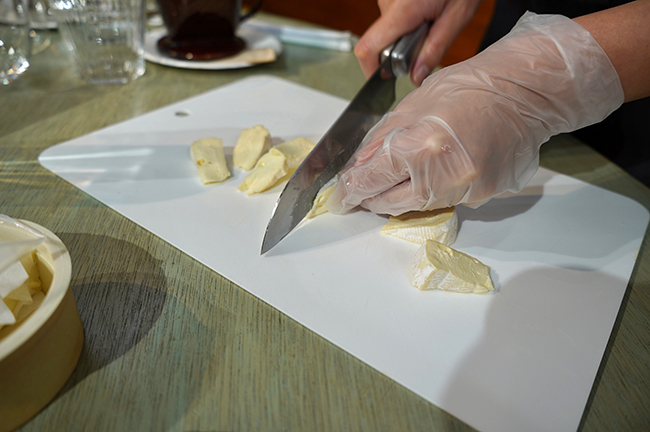 まずはカマンベールチーズをスライスし……