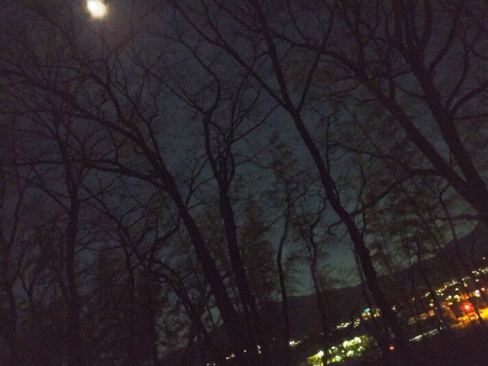 『辺りが真っ暗な中空を見上げる』旨の歌詞があるので、今すぐにでも空を仰ぎたくなるが、ガマン。その体験は展望台までとっておく。んで、この日はたまたま満月だったので、ホントに月明かりの出力が凄かった。月が見える場所ならライトはいらないレベルで明るい。