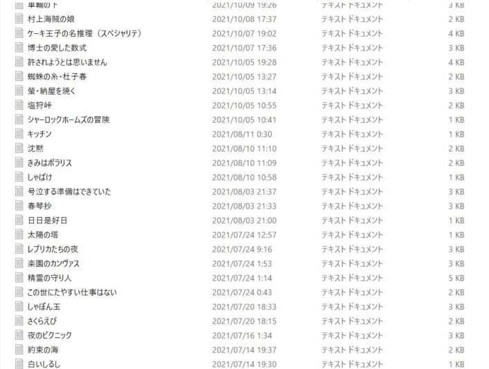 図3 – 感想文のテキストファイルの一覧(抜粋)