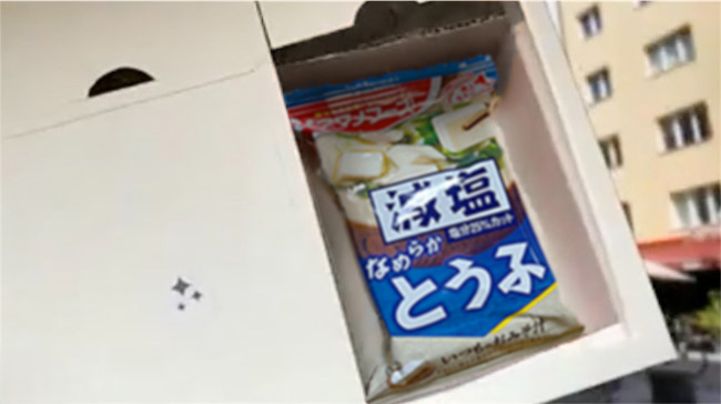 あえて割れやすいお菓子を入れておくことで、荷物にかかるダメージを表現したかったんです。