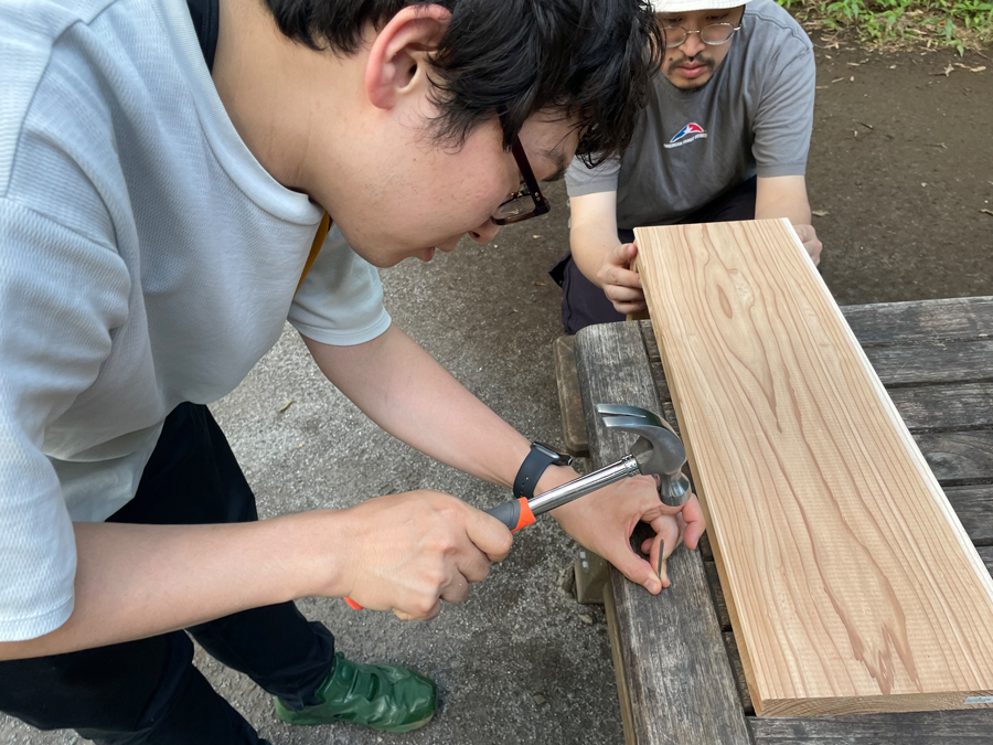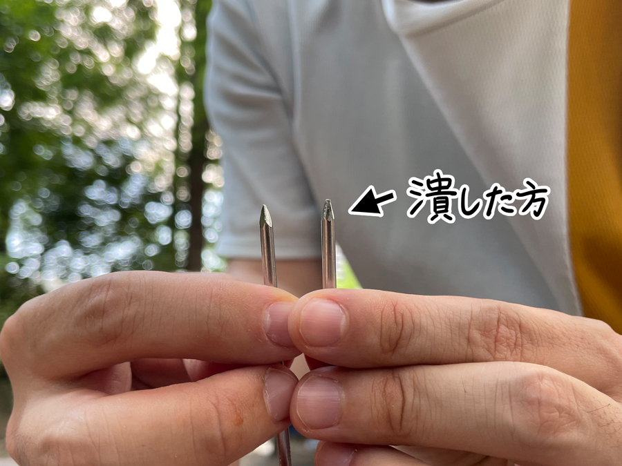 釘の先端をあらかじめ潰しとくと、板が割れないって聞いたことあって。一応やっとこうかと