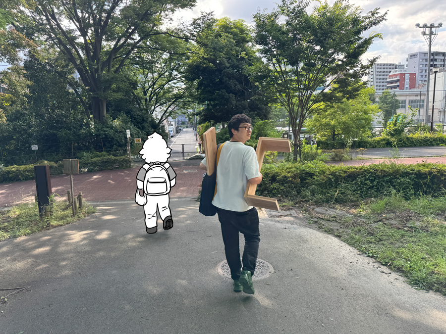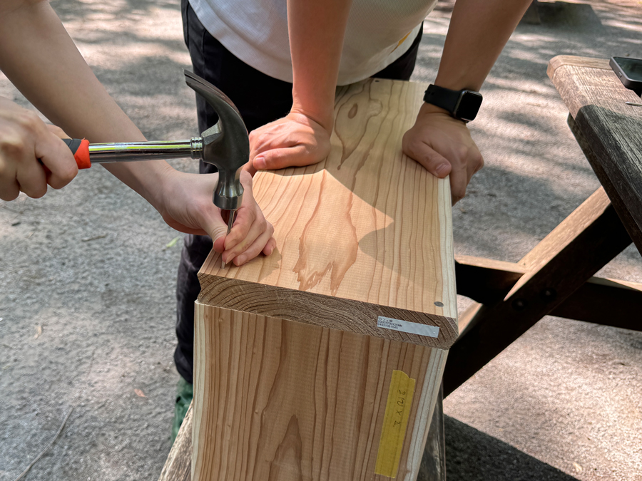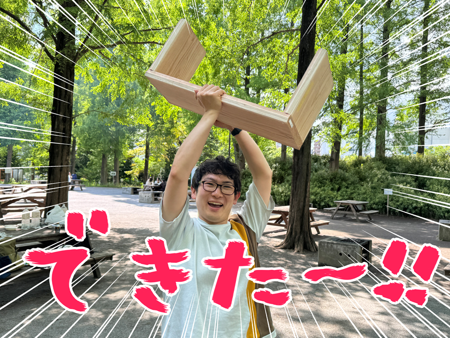 木材、ホームセンターで必要な長さに切ってもらったんで、組み立てて、釘を打てばいいだけです!